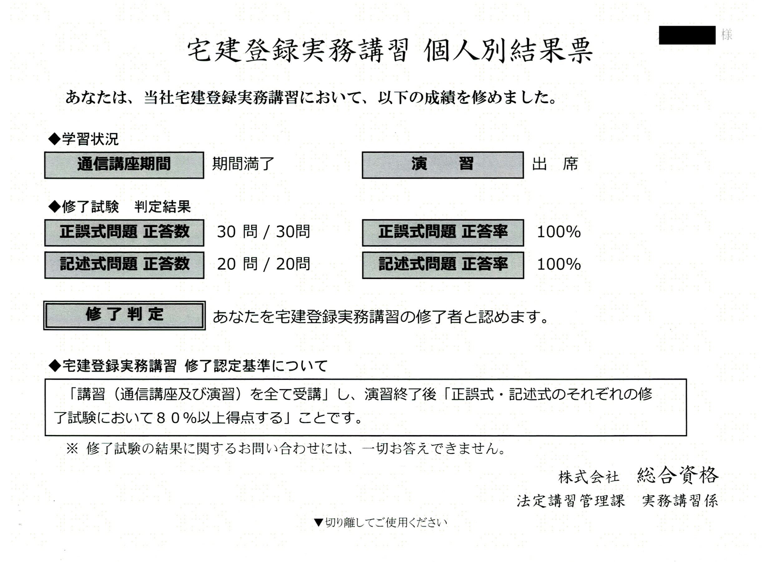修了テストの結果   修了テストの結果が郵送で届きました   それがこちら   そんでもってこちらが修了証 (修了証は資格登録申請の際に提出するのでなくさないように!)   修了テストの結果は見て頂いた通りPerfect🚀   これはスゴイとか簡単だったとかそういった話ではなく 宅建士試験に合格出来た人なら全問解ける能力はあるでしょ… そんな話 なので心配御無用! 何故って宅建士試験に合格した人しか参加しないんですから…🙂 但し事前に演習問題 ...
